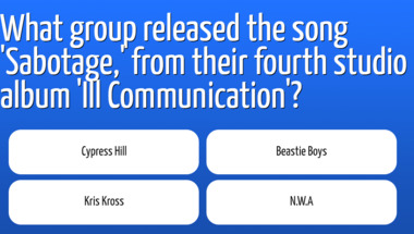 Look forward to questions like "What group released the song 'Sabotage,' from their fourth studio album 'Ill Communic.." and "In 1997, which artist released the UK number 1 album 'Blur'?"