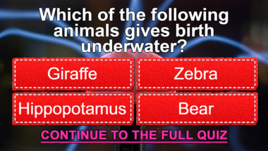 In this fun Science quiz we're going to ask questions like "A zebra is what type of animal?" and "Which of the following animals gives birth underwater?".