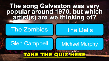 6/10 is what people on average are scoring in this trivia quiz so far. Are you ready to answer questions like "The song "Galveston" was very popular around 1970, but which artist(s) are we thinkin.." and "The song "Take Me Home, Country Roads" was very popular around 1972, but which artist.."