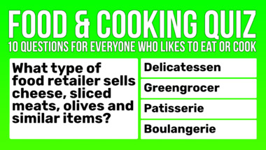 6/10 is the score to beat in this trivia quiz to put yourself over the average quiz taker. But you're probably going to be able to answer questions "What is the name for the French finger of choux pastry, filled with cream?" and "What type of food retailer sells cheese, sliced meats, olives and similar items?" easy!
