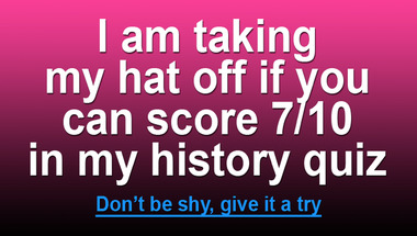 7/10 is what people on average are scoring in this History quiz so far. Are you ready to answer questions like "Who sung "These Boots Are Made For Walking"? " and "Which King of England had six wives?"