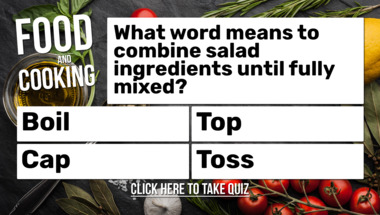 7/10 is the score to beat in this trivia quiz to put yourself over the average quiz taker. But you're probably going to be able to answer questions "What word means to combine salad ingredients until fully mixed?" and "What colour is a radish?" easy!