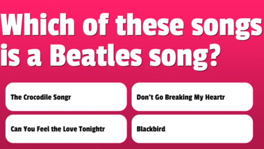 In this fun trivia quiz we're going to ask questions like "Which of these songs is a Beatles song?" and "Which of these songs is a Beatles song?".