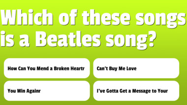 In this fun trivia quiz we're going to ask questions like "Which of these songs is a Beatles song?" and "Which of these songs is a Beatles song?".