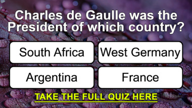 In this fun trivia quiz we're going to ask questions like "Charles de Gaulle was the President of which country?" and "The soccer team Bayern Munich play in which European Country?".
