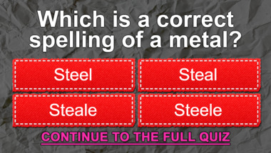 5/10 is the score to beat in this trivia quiz to put yourself over the average quiz taker. But you're probably going to be able to answer questions "Which is a correct spelling of a metal?" and "A whale's fin is refered to as what?" easy!