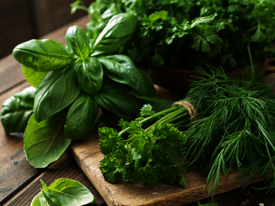 Thyme, bay leaf, basil and mint belong to which group?