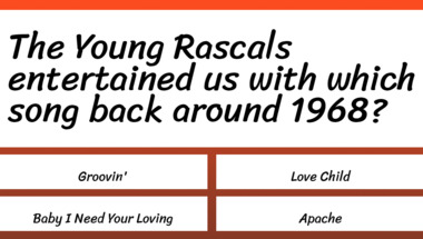 If you can answer "Bobby Darin entertained us with which song back around 1960?" and maybe even "The Young Rascals entertained us with which song back around 1968?" there is a good chance that you're going to beat the average score of 4/10 in this 1960s Songs quiz