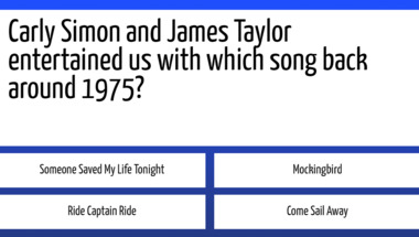 4/10 is what people on average are scoring in this trivia quiz so far. Are you ready to answer questions like "Paul Simon entertained us with which song back around 1973?" and "The Carpenters entertained us with which song back around 1974?"